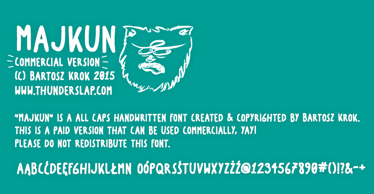 "Majkun" is a all caps handwritten font created & copyrighted by Bartosz Krok.